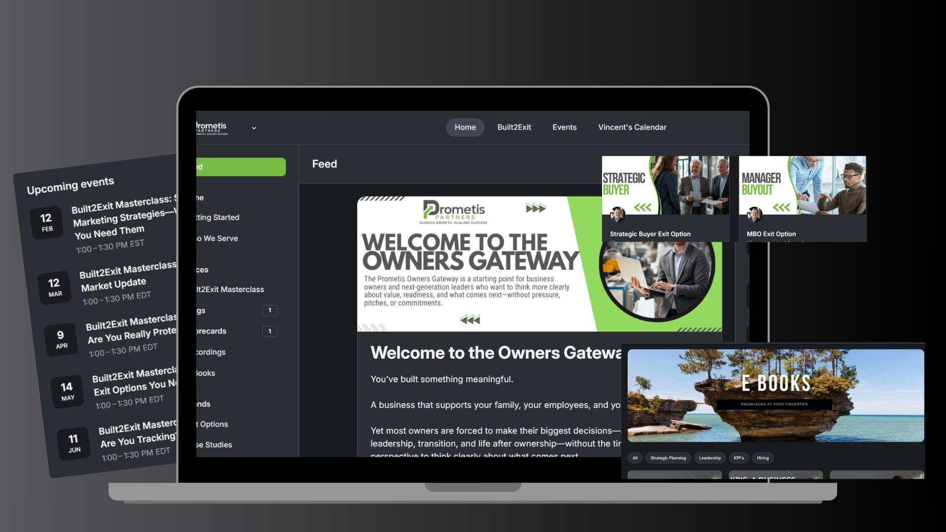 The Owner’s Gateway™ is a private platform built for business owners who want the time and space to think clearly about their business and what comes next. It’s designed to help you step out of the day‑to‑day, gain perspective, and better understand the true strength, value, and future options of what you’ve built.